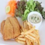 beer battered with ...Read morebeer battered with lettuce, cheddar & tartar sauce served with fries & coleslaw