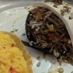 Grilled poblano pepper ...Read more Grilled poblano pepper stuffed with beef, plantains, onion, roasted tomato, raisins, toasted almonds sour cream and panela cheese. Served with beans & rice ...Read less ...Read less$340