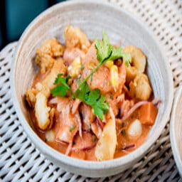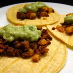 order of 3 tacos with sauteed shrimp, bacon, mushrooms, peppers & crispy cheese