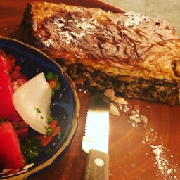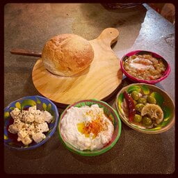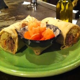 thinly sliced tender chicken marinated in mediterranean spices, grilled & wrapped with hummus, tahini, fried eggplant, cabbage, tomato & onion