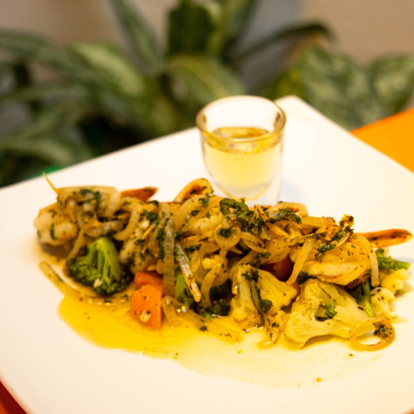 sauteed with orange skin flakes, tequila, onion, serrano pepper